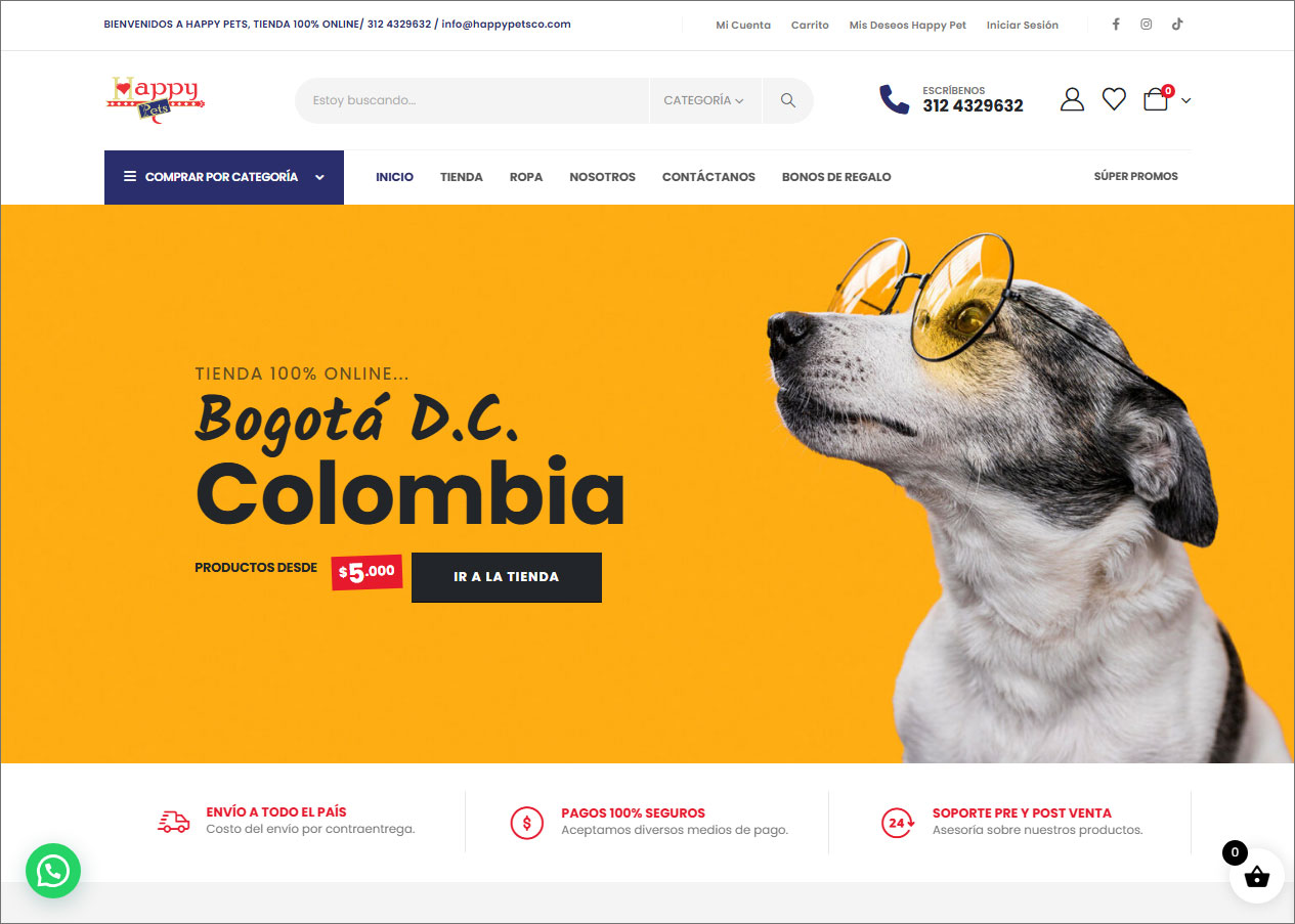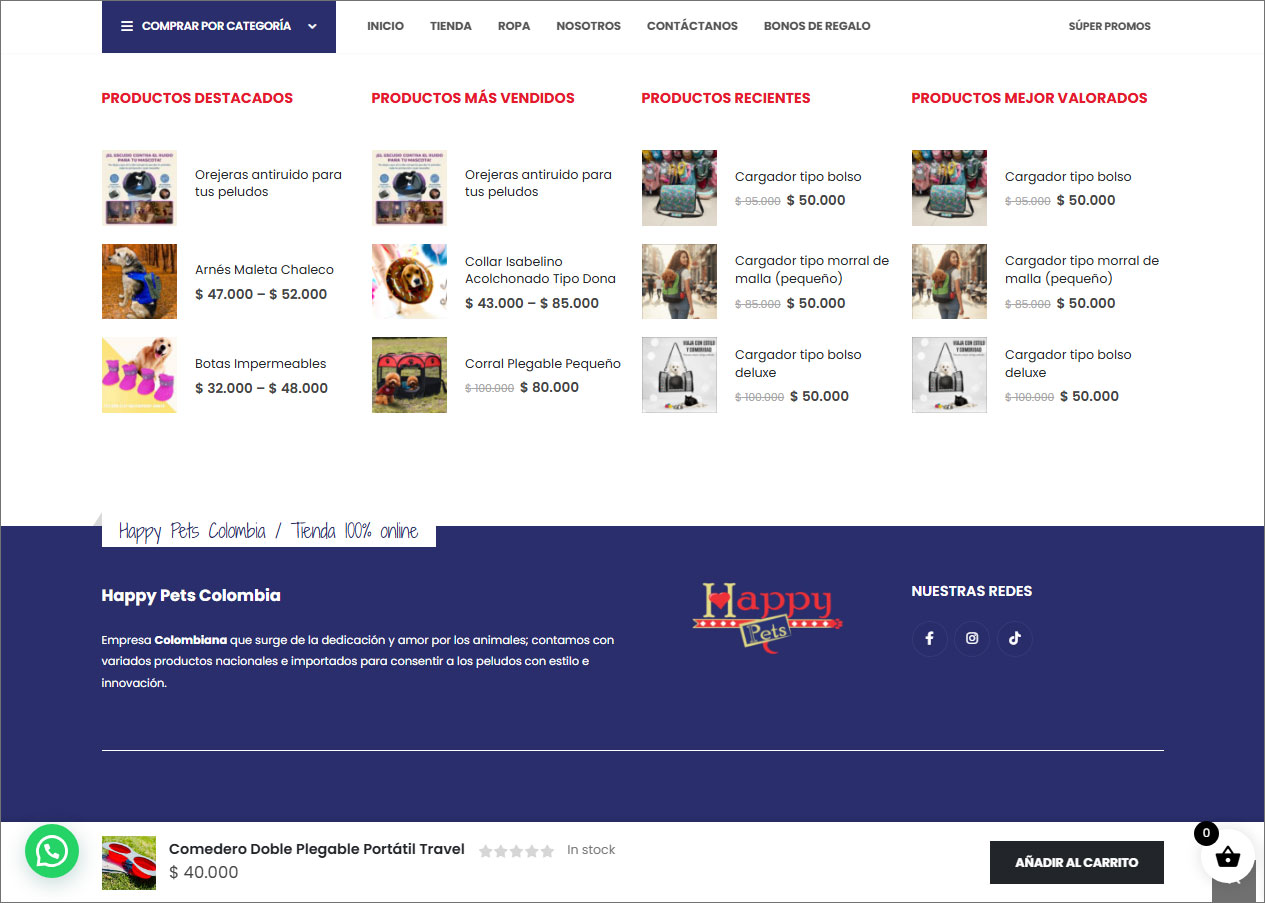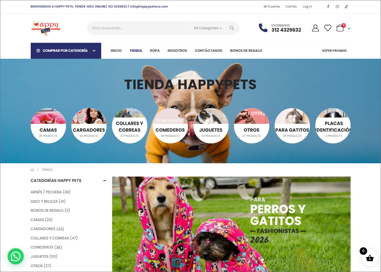 HAPPY PETS es una empresa colombiana que surge de la dedicación y amor por los animales; contando con variados productos nacionales e importados para consentir a los peludos con estilo e innovación.
