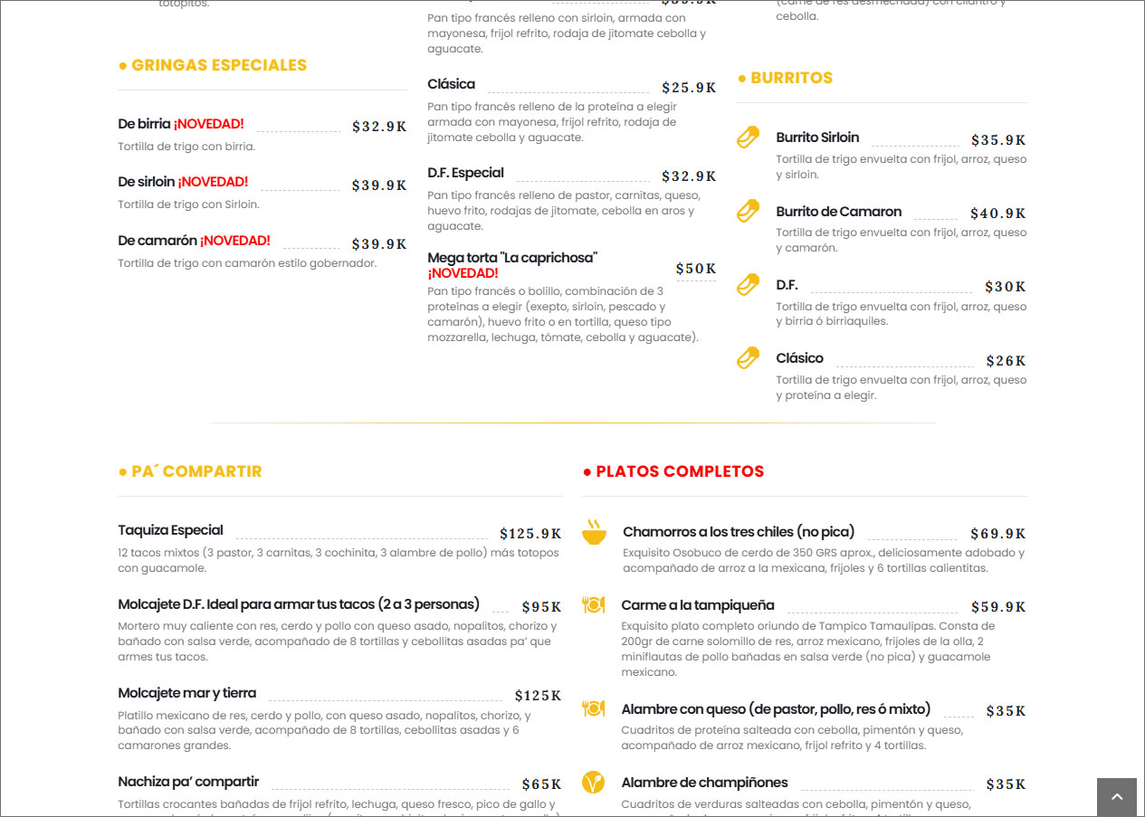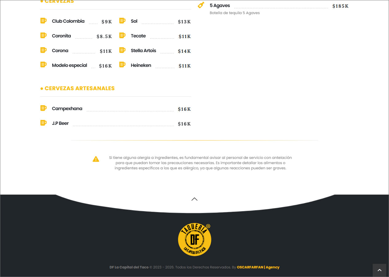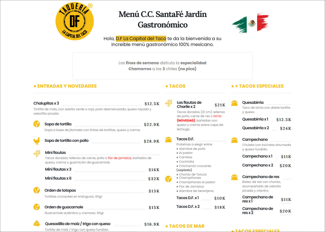 D.F La Capital del Taco es un restaurante de gastronomía 100% mexicana, con sedes en el Centro Comercial SantaFé y la Plaza de Mercado Paloquemao.